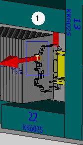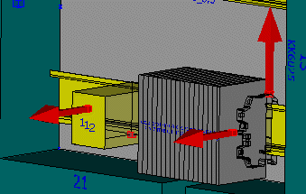 Заданные и заново определенные выводы размещений изделий представлены в виде красного параллелепипеда.