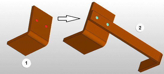 Кроме автоматического унаследования монтажных отверстий существует возможность последующего переноса монтажных отверстий с одного функц. элемента-шины на другой, уже размещенный. Здесь также действует условие, что функц. элементы нужно размещать параллельно друг над другом и что монтажные отверстия должны полностью лежать на монтажной поверхности целевого функц. элемента.