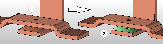 На унаследование монтажных отверствии влияют разные действия, которые изменяют медные функц. элементы. Изменение медных функц. элементов может привести к тому, что унаследованные монтажные отверствия не будут отображаться правильно. Если активирована пользовательская настройка Графическая обработка > Изгиб шины > Автоматическое обновление многократных пробоев, то обновление производится после каждого изменения монтажных отверстий автоматически.