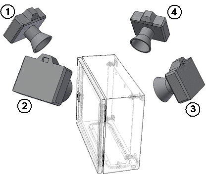 Изометрические виды, в которых трехмерные представления отображаются в двух измерениях, содержат следующие параметры: ЮЗ изометрия (1), ЮВ изометрия (2), СВ изометрия (3) и СЗ изометрия (4).