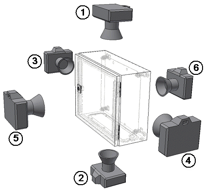 К ортогональным видам относятся параметры Вверху (1), Внизу (2), Слева (3), Справа (4), Спереди (5) и Сзади (6).