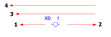 Для клеммыX2:1при поиске от клеммы вверх в той же зоне не найден функциональный текст зоны. После этого выполняется поиск зоны схемы соединений от клеммы вниз и обнаруживается функциональный текст зоныABC (1).Для клеммX2:2иX2:3при поиске в той же зоне ни сверху, ни снизу функциональный текст зоны не обнаруживается. Затем выполняется поиск зон слева от клемм снизу вверх, и в зоне клеммыX2:1обнаруживается функциональный текст зоныDEF (2+3).Для клеммыX3:4при поиске от клеммы вверх не найден функциональный текст зоныGHI (4). Для клеммX3:5,X3:6иX4:7при поиске обнаруживается только лежащий в зоне слева от клемм функциональный текст зоныJKL (5+6+7).