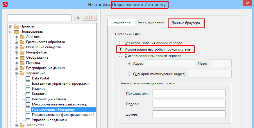 На платформе EPLAN имеются различные компоненты программы, которые используют окно браузера для интернет-соединения (например, EPLAN Data Portal, менеджер загрузок EPLAN и т. д.). В настройках подключения к Интернету теперь можно удалять данные браузера и задавать использование настроек прокси операционной системы.