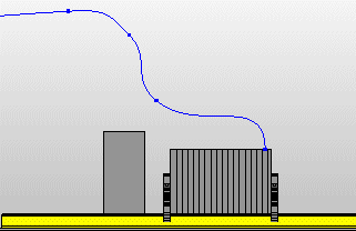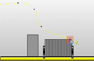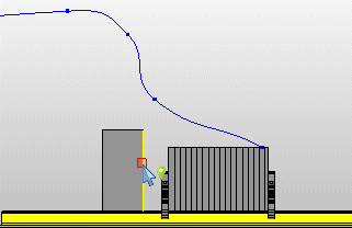 В следующем примере нужно выровнять направление кривой по касательной к вертикальному краю, чтобы она подходила к выводу устройства вертикально. Точка наблюдения — "Сверху".