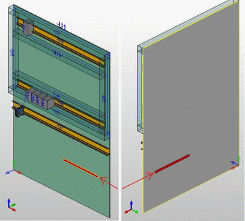 Соединительные отверстия для проводов служат для того, чтобы при маршрутизации направлять соединения на обратную сторону монтажных плат, разделительных пластин или других функциональных элементов электрошкафа. При маршрутизации используются автоматические сегменты маршрутизации, возникающие при генерировании сети соединенных сегментов между размещениями изделий и соединительным отверстием для проводов.