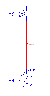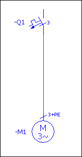 - Разместите на схеме соединений трехфазный двигатель с выводом PE / PEN в виде варианта А под автоматом защиты двигателя -Q1 таким образом, чтобы оба условных обозначения были связаны линией автоматического соединения.